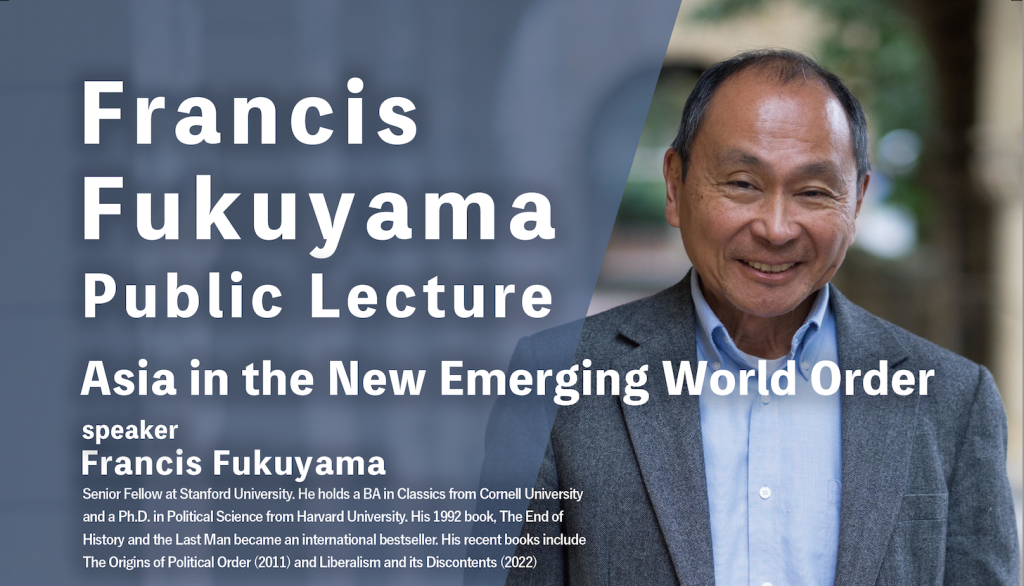 - Francis Fukuyama Public Lecture “Asia in the New Emerging World Order”Francis Fukuyama Public Lecture “Asia in the New Emerging World Order” Date & Time: November 19 (Wednesday), 2025 16:30 – 18:00 (Doors open at 16:00)Ven…